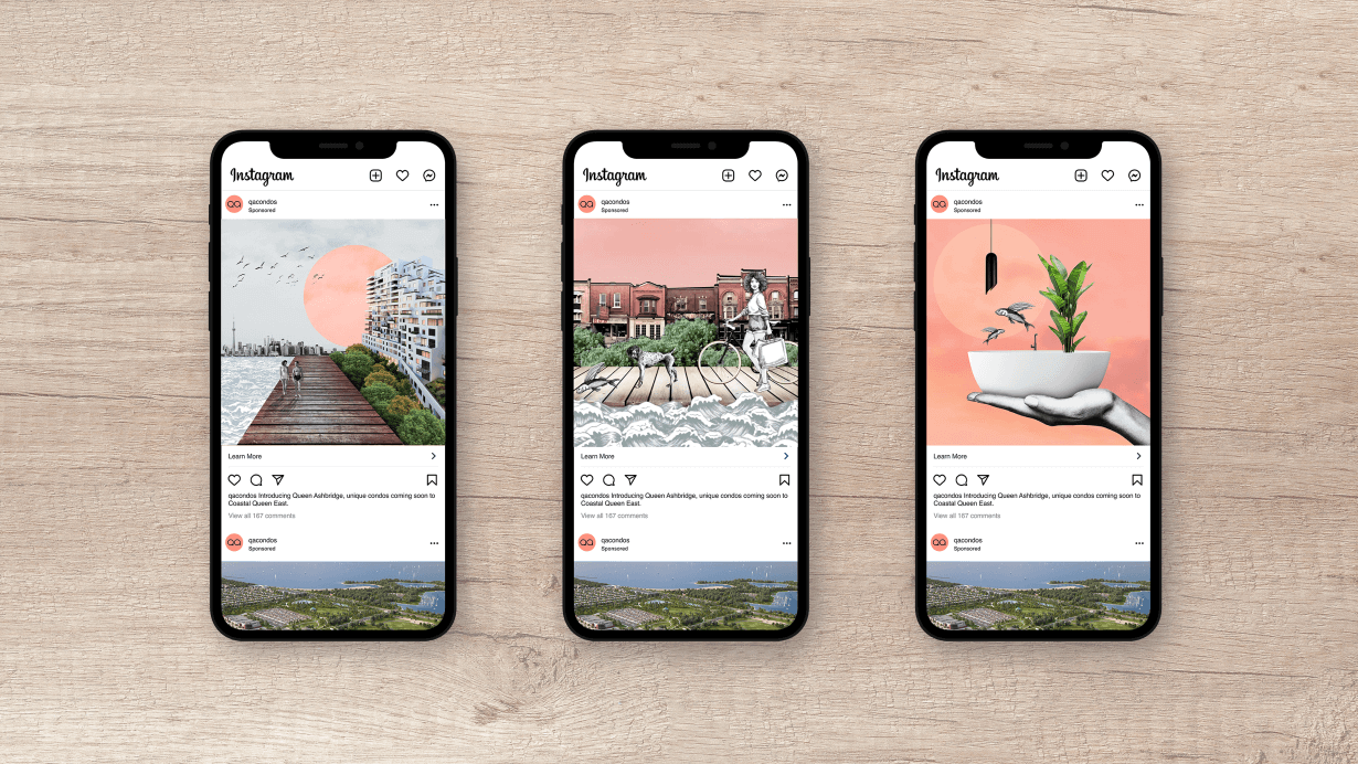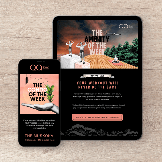 We developed a positioning that touted Queen & Ashbridge as a beach escape hidden in a city setting. We rolled out branding, branded communications, environmental design and placemaking strategies that all laddered up to this thought. Because Queen & Ashbridge was launched at the height of the pandemic, we also look towards unique virtual strategies and mediums to tell our story. We created an interactive website and held a virtual event with a special appearance by Snoop Dogg and over 3,000 attendants.