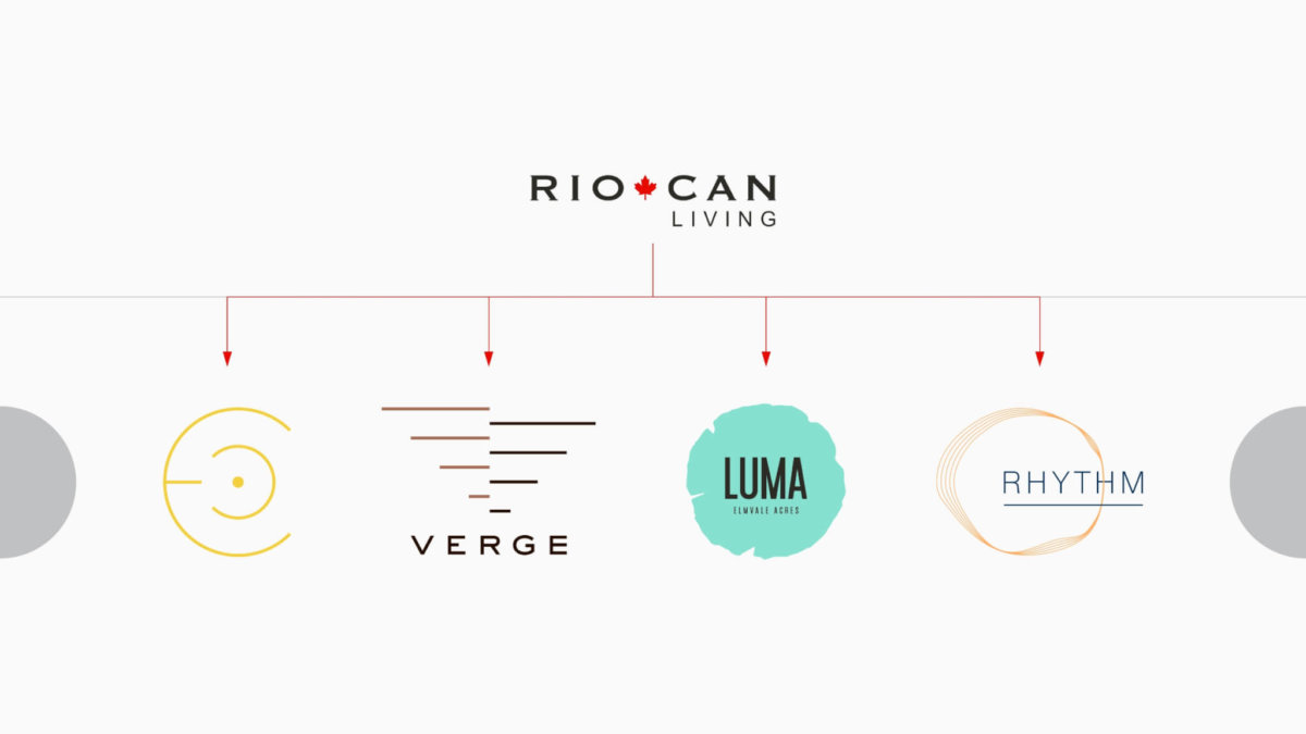 RioCan REIT is Canada’s largest shopping centre owner, managing a commercial property portfolio worth $14B with a net leasable area of 44M square feet. To optimize values, the company has been redeveloping certain retail-only sites into mixed use purpose-built rental residential communities under its RioCan Living brand. These developments need identities to inform place design and marketing strategies.